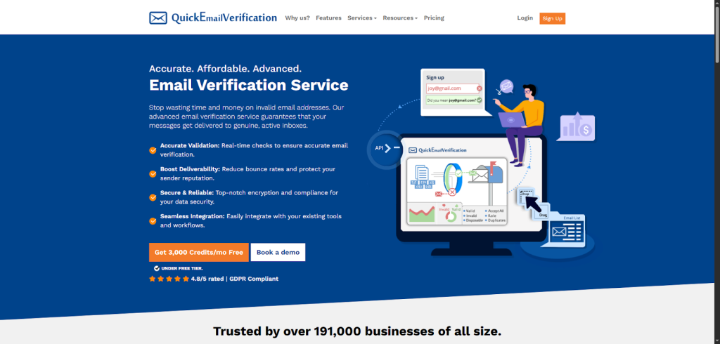 QuickEmailVerification99%280190 ms$5GDPR, risk detection
