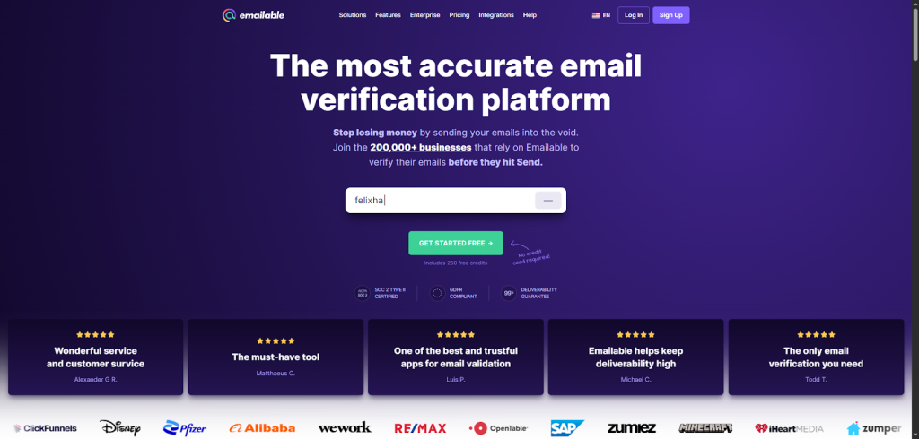ZeroBounce offers fast, reliable email verification with 99.6% accuracy and excellent uptime. It’s easy to set up and integrates smoothly with popular platforms, plus it follows strict privacy rules like GDPR and HIPAA.