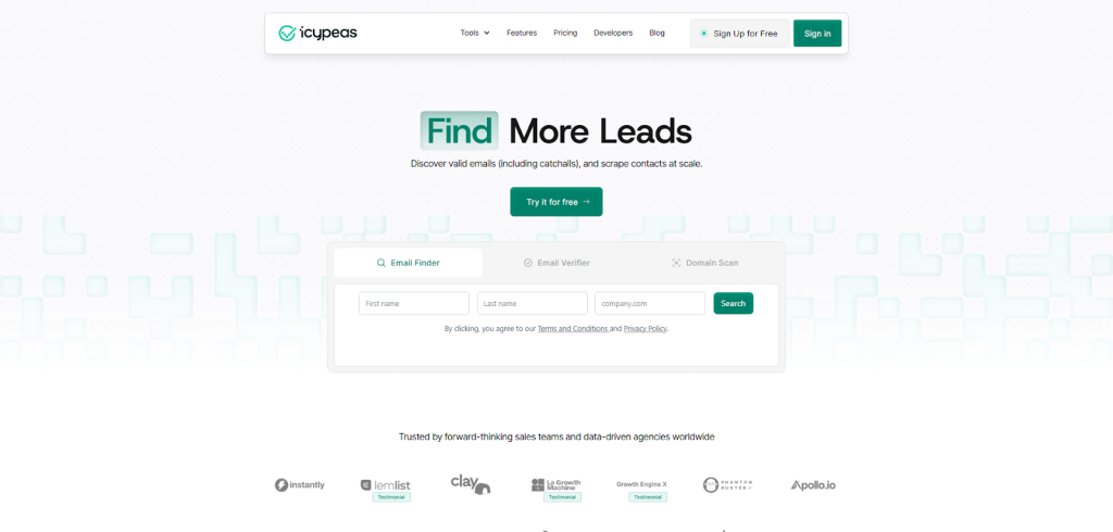 For teams running high-volume outbound or agencies managing multiple clients, Icypeas gives you accurate emails, fast verification, and deep profile enrichment, all without overcomplicating your stack. It’s the kind of API you add once and wonder how you prospected without it.