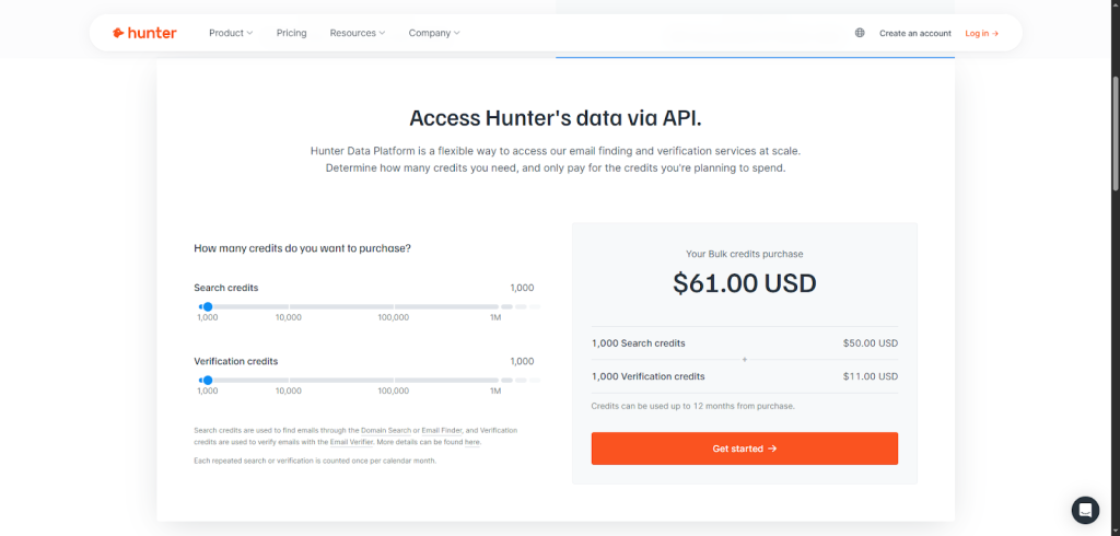 What makes Hunter.io stand out? First off, its API flexibility is top-notch. Whether you’re a developer or a marketer, you’ll appreciate the easy-to-use but powerful Hunter API and Hunter email verifier API.