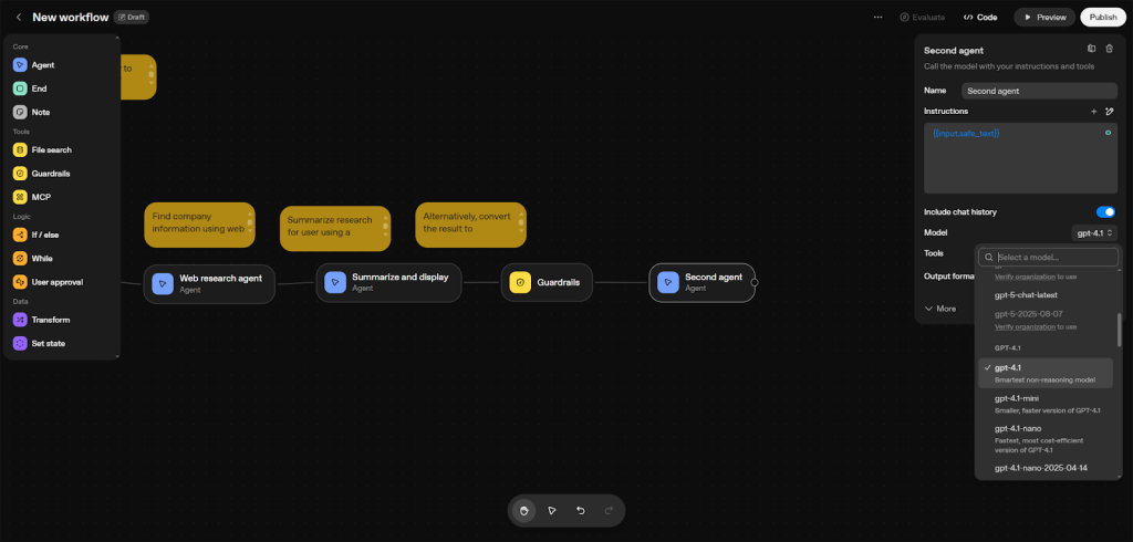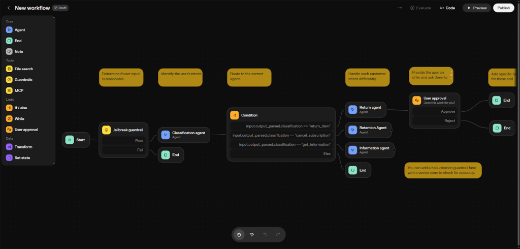 Let me walk you through the visual workflow builder in OpenAI’s Agent Builder.