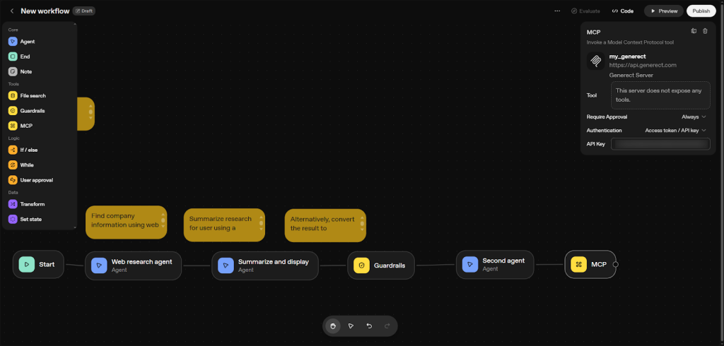 Imagine every improvement you test instantly connecting to live sales data. That’s what happens when you wire Generect’s MCP into your OpenAI Agent Builder flow.