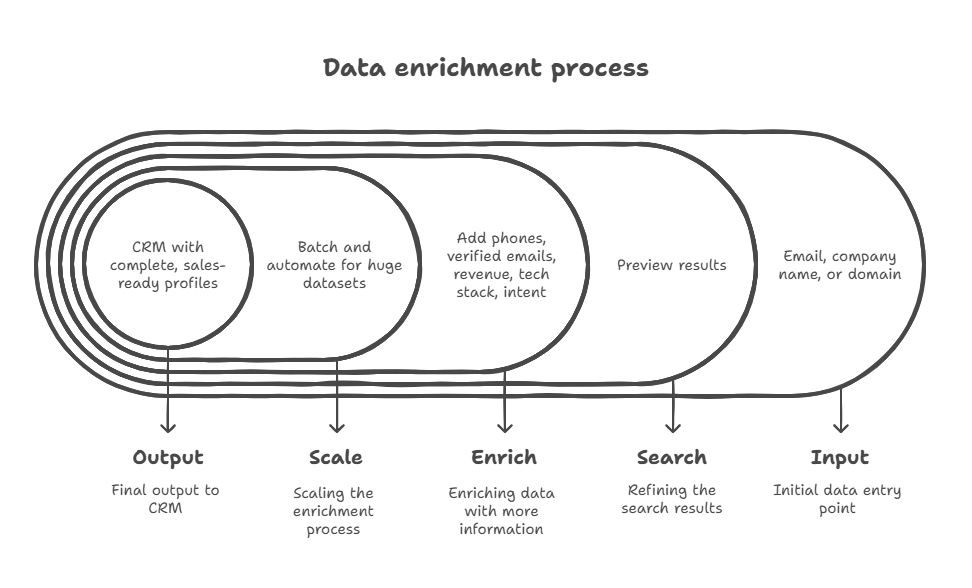 P.S. If the text feels abstract, think of enrichment as a small conveyor belt. Data goes in on one side, gets upgraded step by step, and comes out the other side sales-ready.