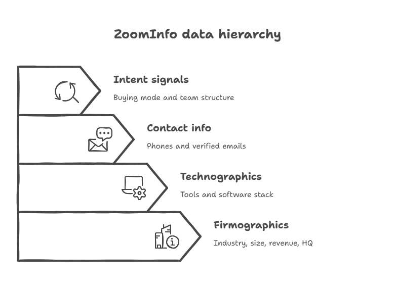 For starters, Zoominfo biggest strength is its depth and reliability. When you need data you can trust at scale, it delivers:
